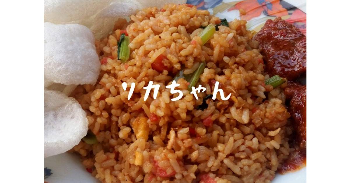1 porsi nasi 1 telur 1 sdm sambal bajak 12 sdt garam 14 kaldu bubuk 14 merica bubuk 12 sdt gula 1 sdm kecap asin. Masukkan nasi aduk sampi rata dengan bumbu halus. Disajikan dengan kerupuk dan acar mentimun rasa nasi goreng.