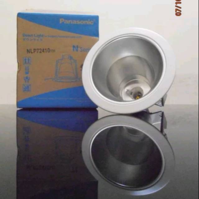 Kap rumah lampu model down light fitting 1 x E27 Panasonic 4 inch NLP72310- NLP72373 CFL model bulat untuk lampu hemat energi atau lampu LED merk Panasonic untuk lampu hemat energy 13W - 23W Essensial Philips atau Osram dll terbuat dari bahan berkualitas pilihan ukuran diameter 5 inch reflektor kilap pilihan warna bibir downligh Putih Silver Satin dan Gold biasa digunakan untuk desain. Karena Panasonic sudah sudah ada sejak tahun 1918 dan termasuk perusahaan perangkat elektronik asal Jepang yang berkualitas. PT Panasonic Gobel Eco Solutions Sales Indonesia perusahaan elektronik asal Jepang meluncurkan lampu-lampu LED light emitting diode dekoratif untuk menghadirkan pencahayaan yang atraktif di dalam rumah layaknya ruang pajang showroom.