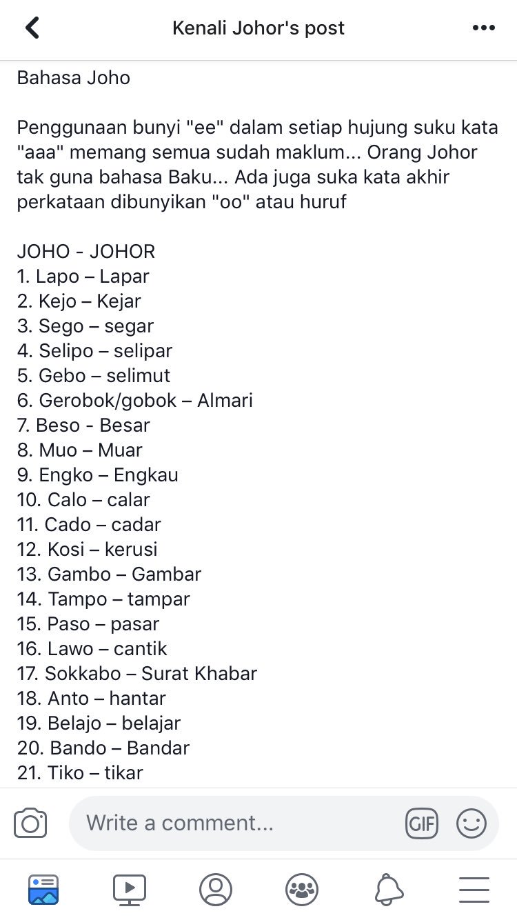Kata kata orang johor. Kehidupan yang cukup rumit seringkali mengajarkan kita tentang sesuatu. LAKSA JOHOR RUMAH MAS ORANG KATA SEDAP TAPI BAGI TEKAK AKU TIDAK Maaf SEDAP itu subjektif so kalau makan kena ikut tekak sendiri okay jangan ikut aje apa orang kata semata nak menjaga hati sesaorang. - Kata-kata mutiara saling tolong menolong bisa menjadi renungan untuk membantu sesama.